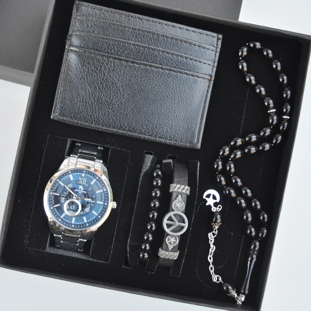 Cüzdanlı Tespihli Erkek Saat Seti 3686