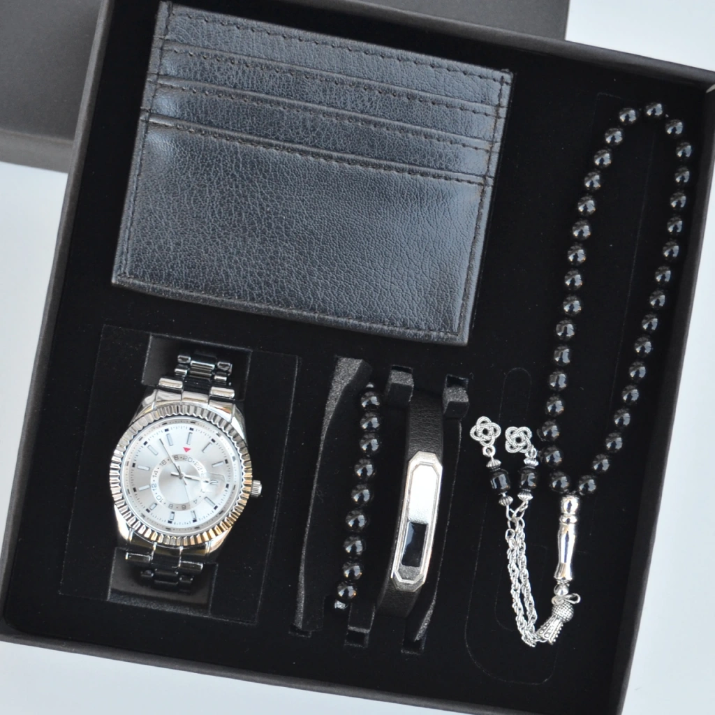 Cüzdanlı Tespihli Erkek Saat Seti 3694