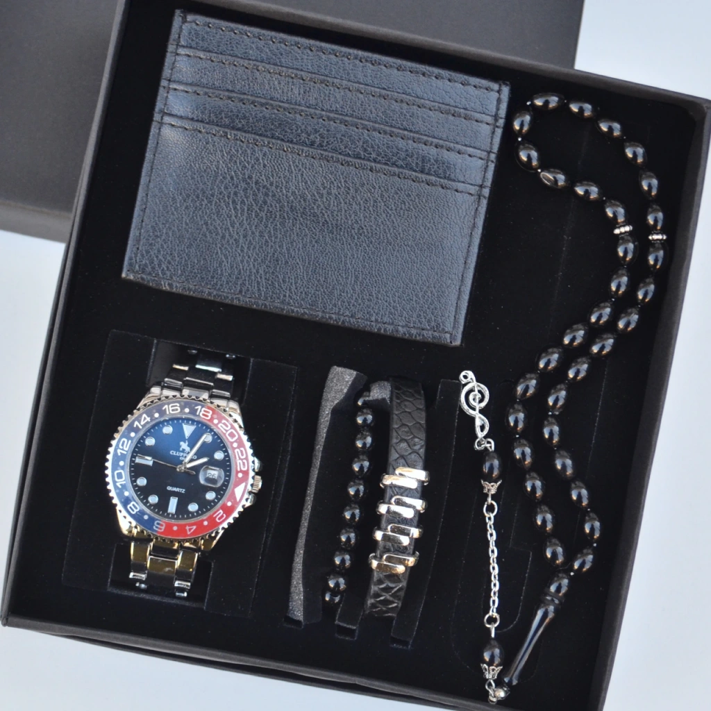 Cüzdanlı Tespihli Erkek Saat Seti 3698