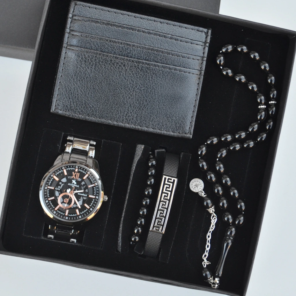 Cüzdanlı Tespihli Erkek Saat Seti 3702
