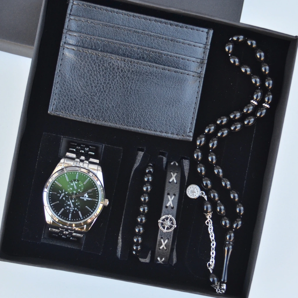 Cüzdanlı Tespihli Erkek Saat Seti 3713