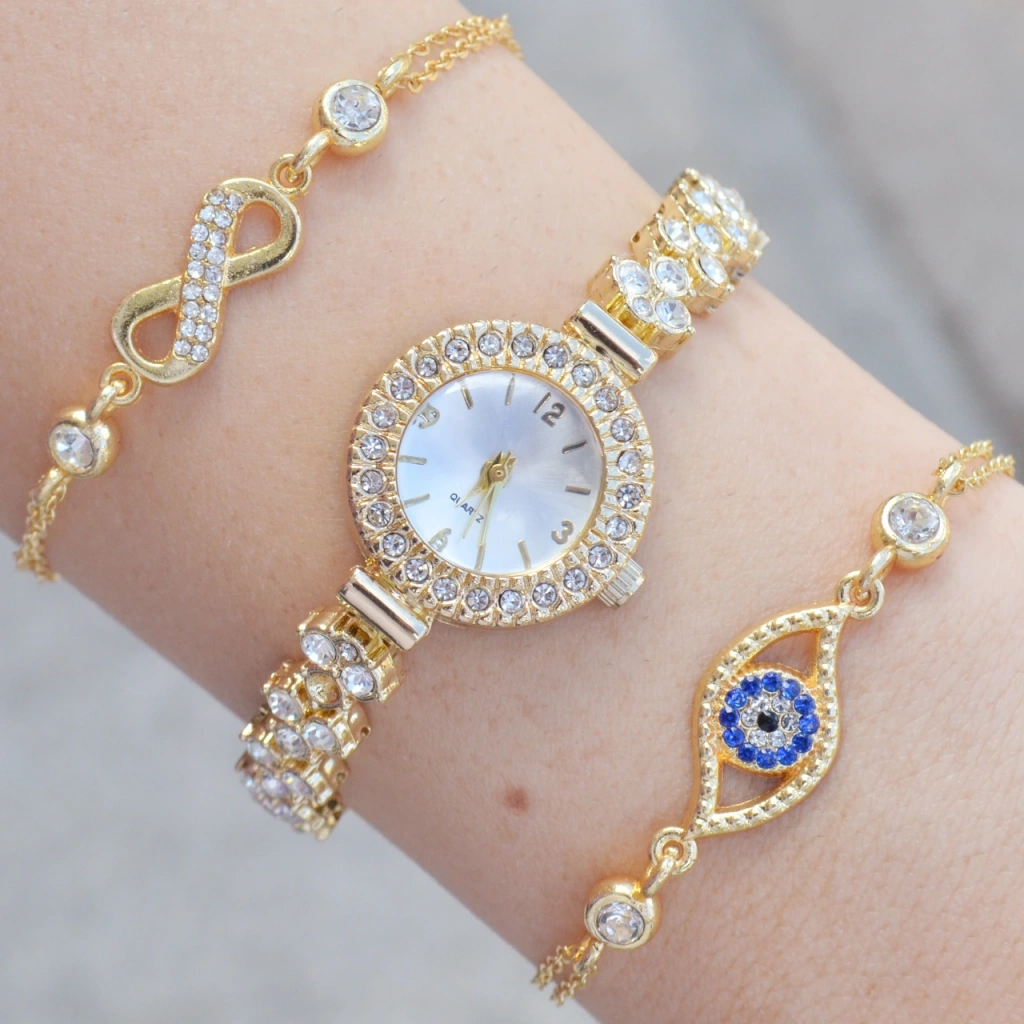 Gold Metal Kordon Kadın Saat Kombini 3430