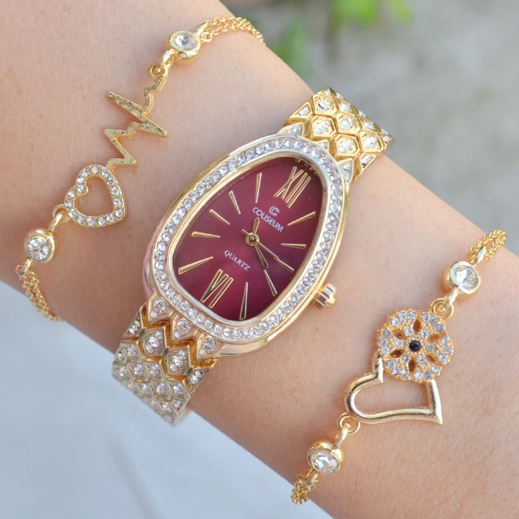 Gold Metal Kordon Kadın Saat Kombini 3583