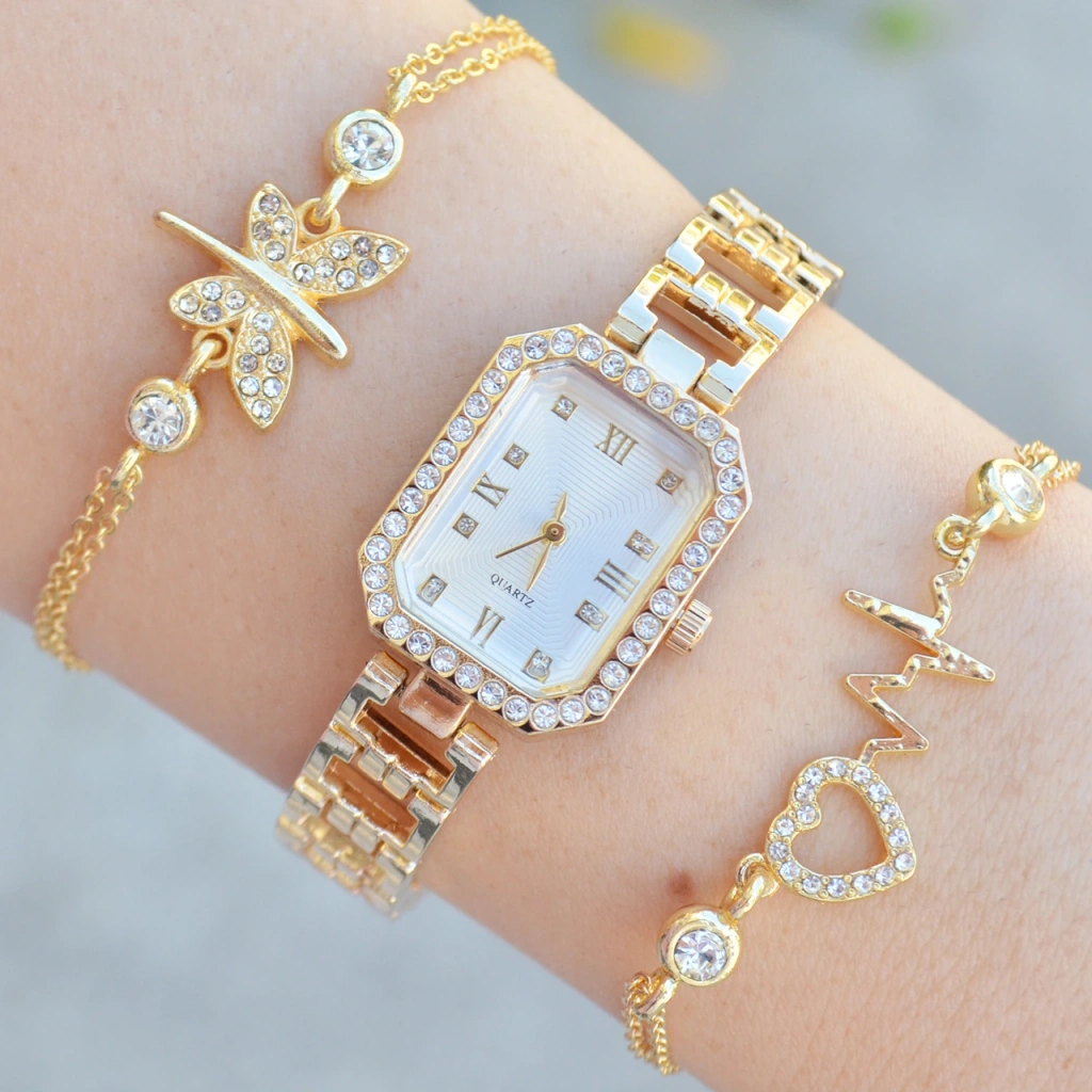 Gold Metal Kordon Kadın Saat Kombini 3598