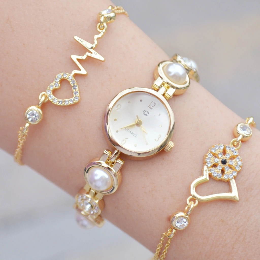 Gold Metal Kordon Kadın Saat Kombini 3599