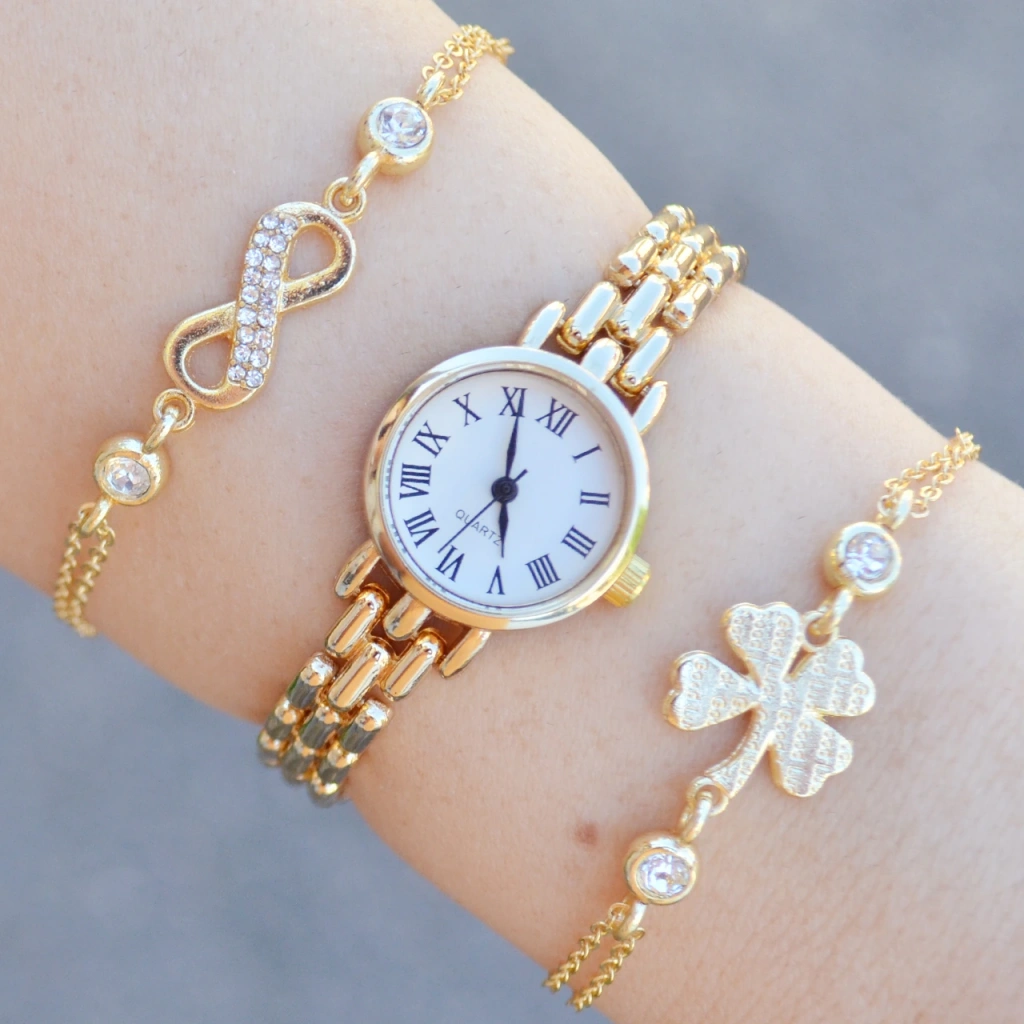 Gold Metal Kordon Kadın Saat Kombini 3600