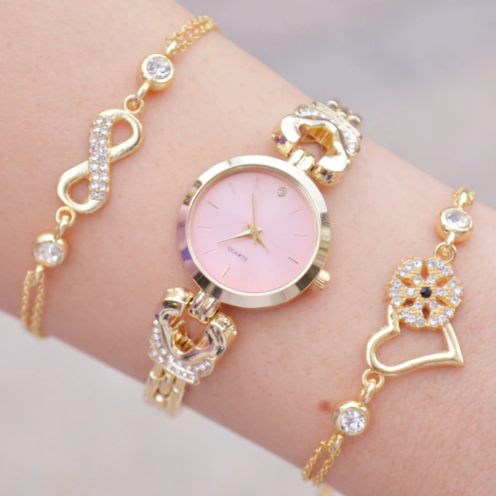 Gold Metal Kordon Kadın Saat Kombini 3605