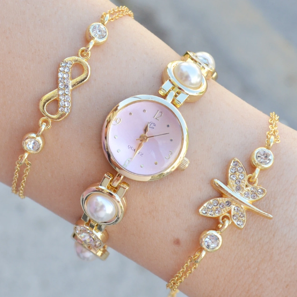 Gold Metal Kordon Kadın Saat Kombini 3608