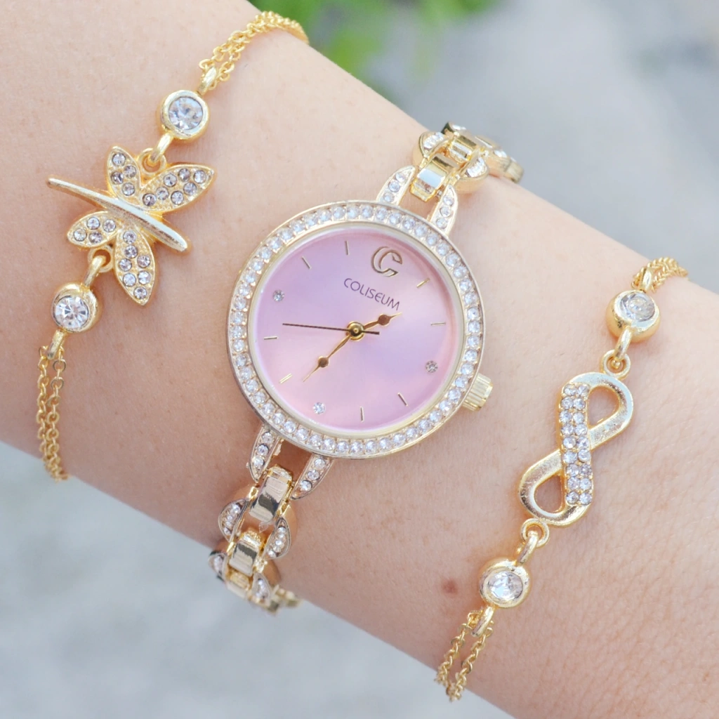 Gold Metal Kordon Kadın Saat Kombini 3616