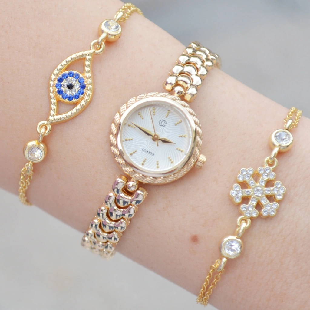 Gold Metal Kordon Kadın Saat Kombini 3626