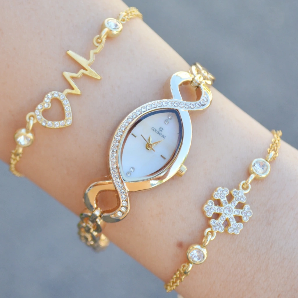 Gold Metal Kordon Kadın Saat Kombini 3630