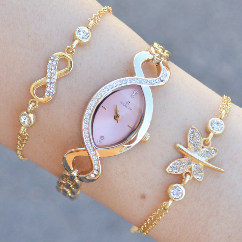 Gold Metal Kordon Kadın Saat Kombini 3633