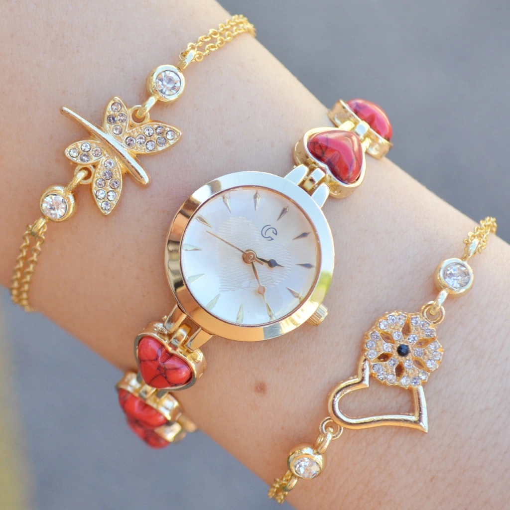 Gold Metal Kordon Kadın Saat Kombini 3635