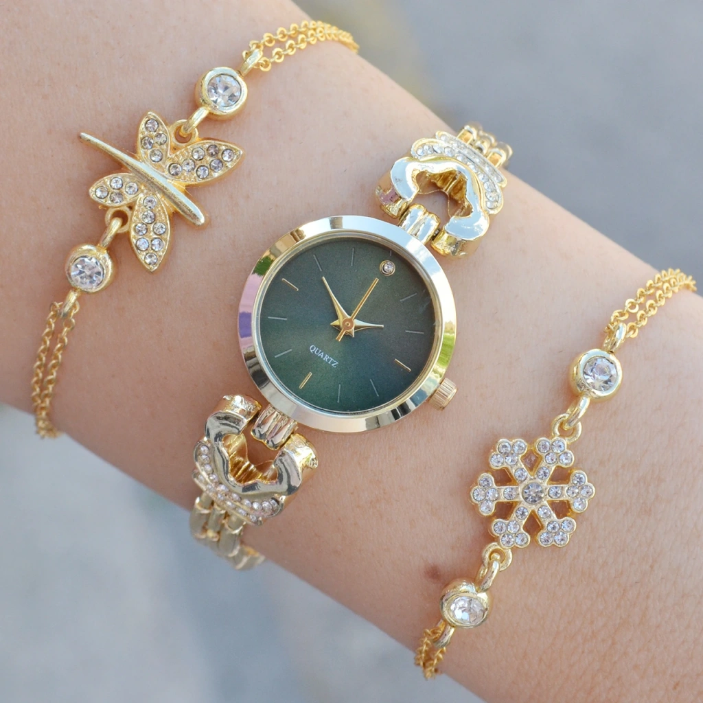 Gold Metal Kordon Kadın Saat Kombini 3639