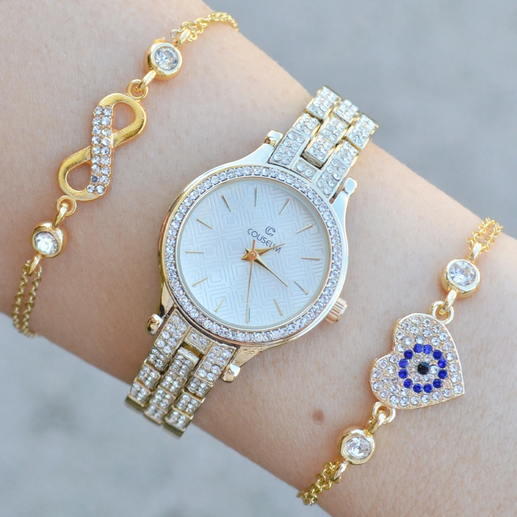 Gold Metal Kordon Kadın Saat Kombini 3749