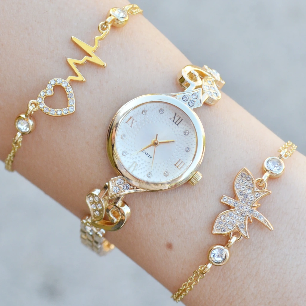 Gold Metal Kordon Kadın Saat Kombini 3750