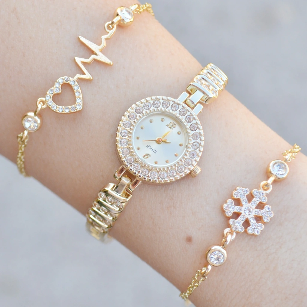 Gold Metal Kordon Kadın Saat Kombini 3752