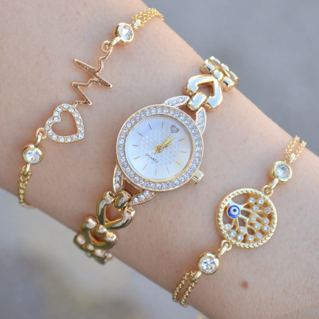 Gold Metal Kordon Kadın Saat Kombini 3753