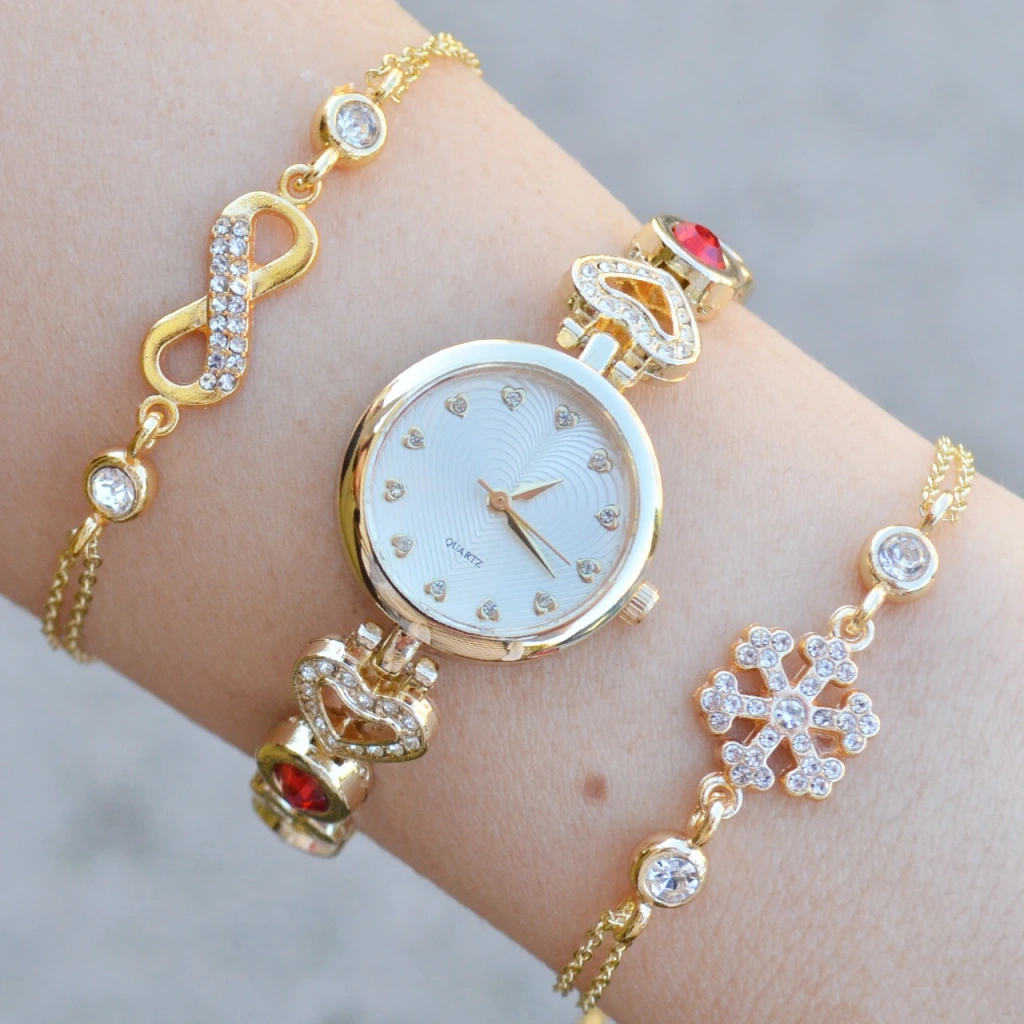 Gold Metal Kordon Kadın Saat Kombini 3756
