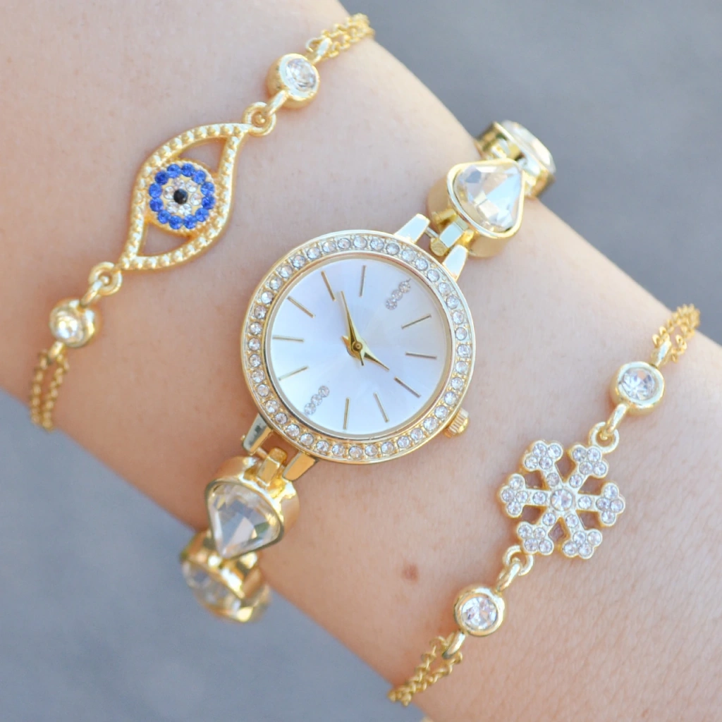 Gold Taşlı Metal Kordon Kadın Saat Kombinin3634