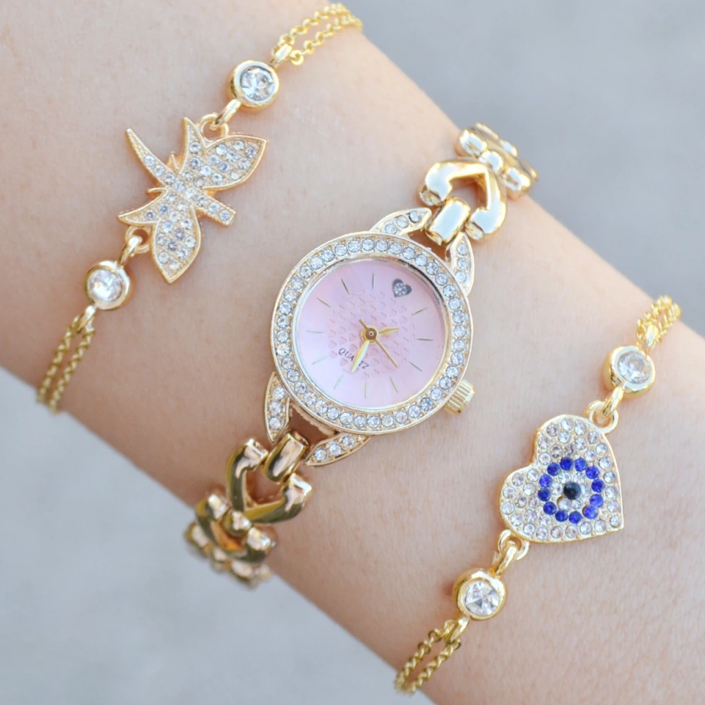 Gold Metal Kordon Kadın Saat Kombini 3761