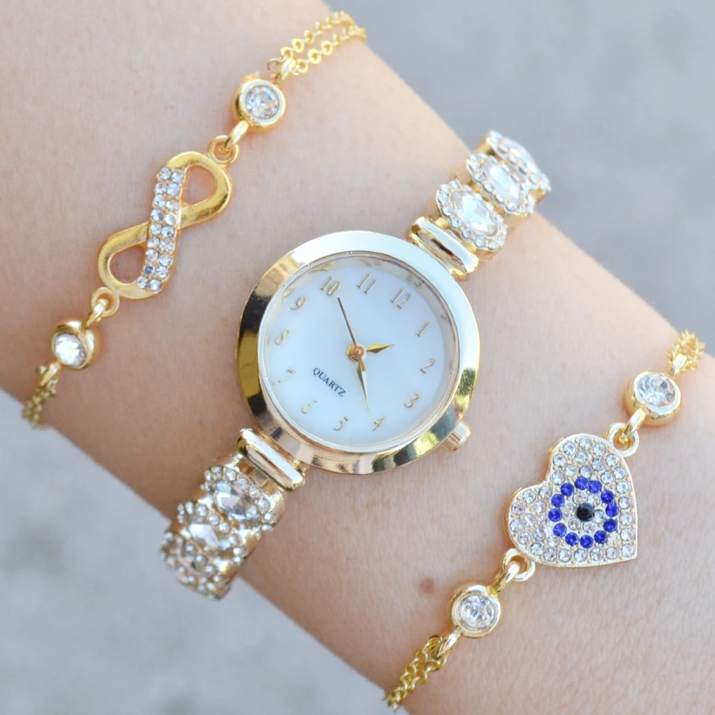 Gold Metal Kordon Kadın Saat Kombini 3762