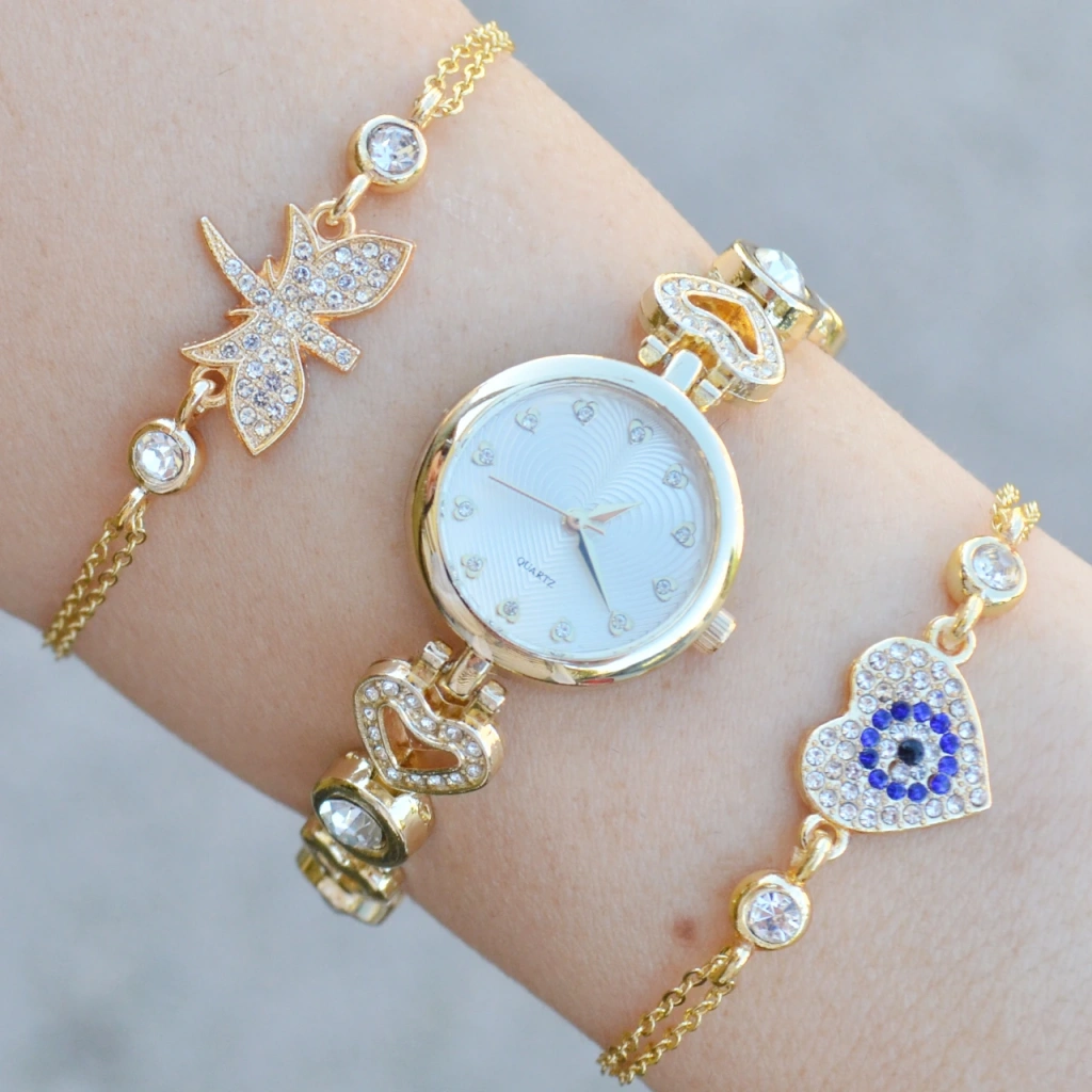 Gold Metal Kordon Kadın Saat Kombini 3764