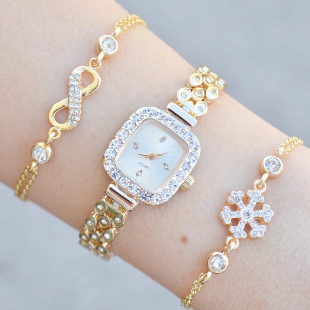 Gold Metal Kordon Kadın Saat Kombini 3769