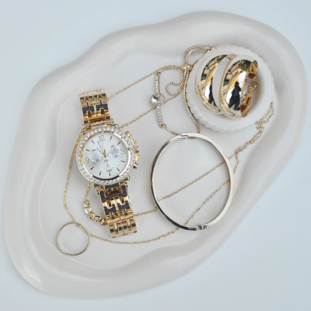 Gold Metal Kordon Küpe Kolye Bileklik Seti 3671