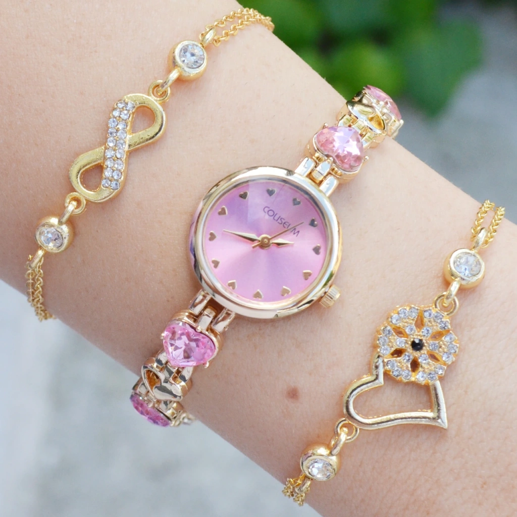Gold Taşlı Metal Kordon Kadın Saat Kombini 3597