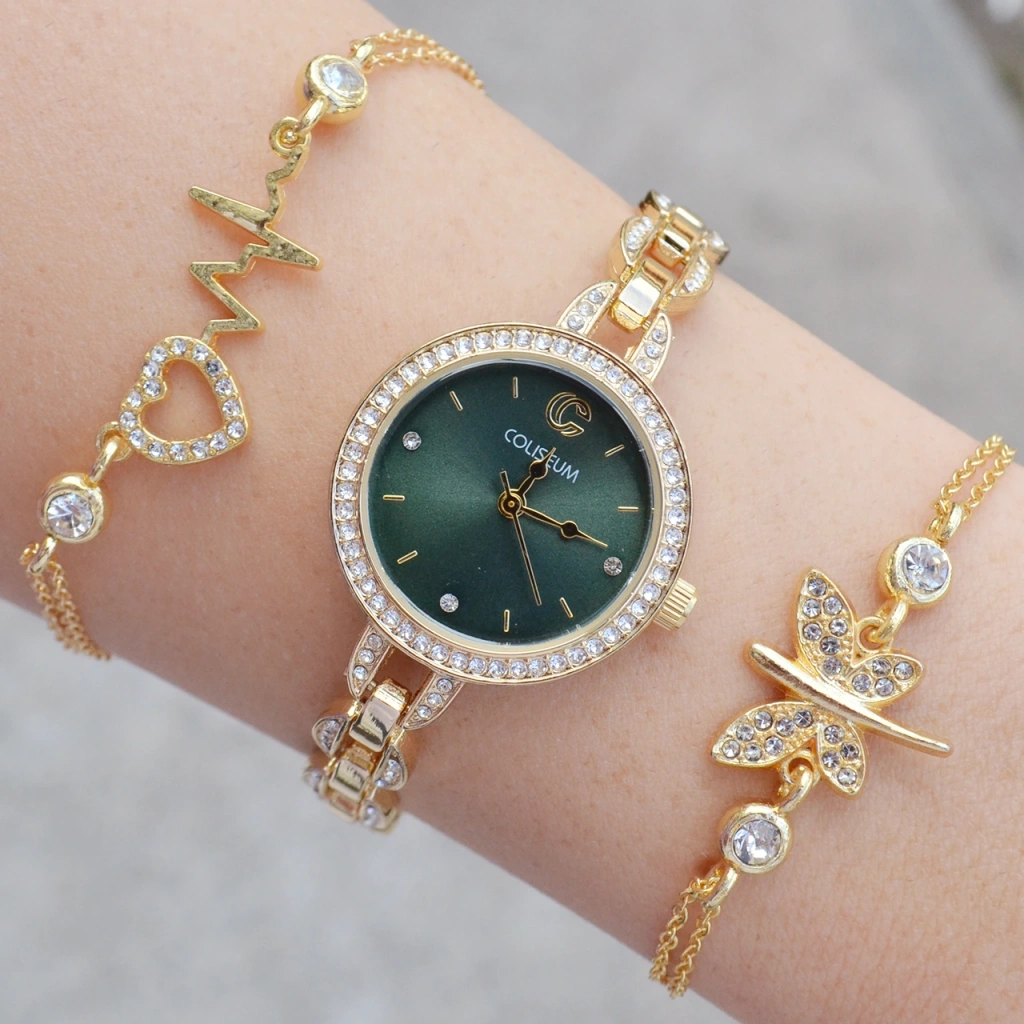 Gold Metal Kordon Kadın Saat Kombini 3577