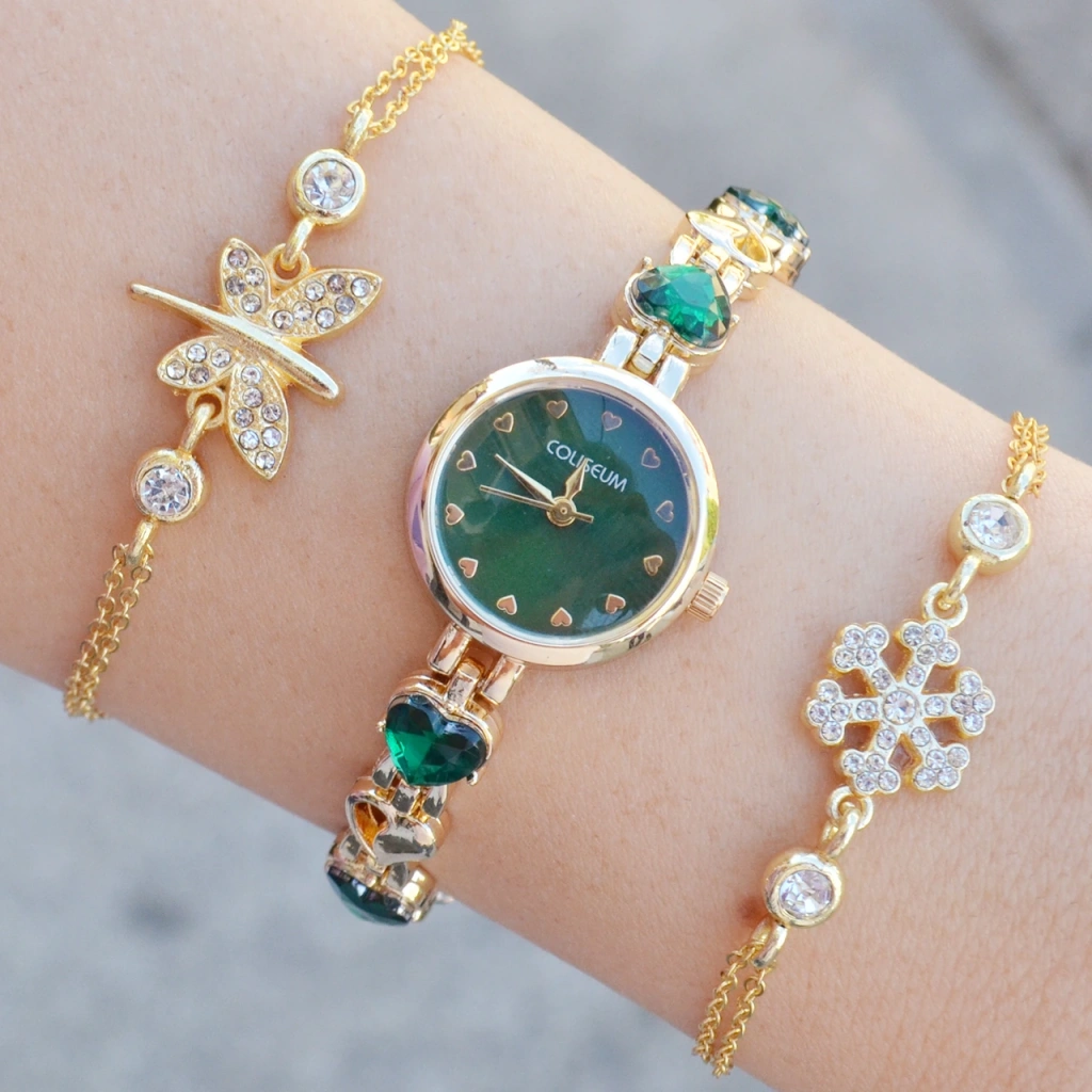 Gold Taşlı Metal Kordon Kadın Saat Kombini 3579