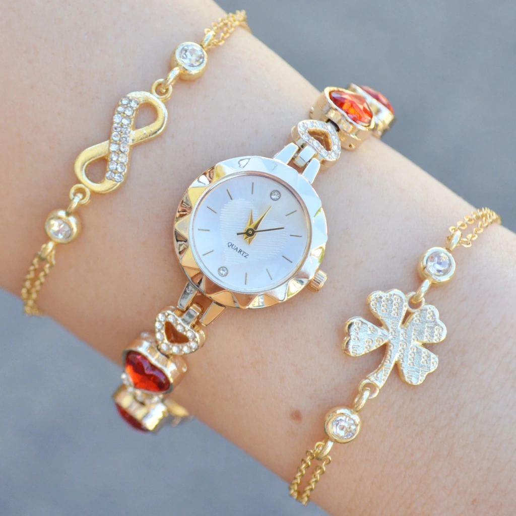 Gold Taşlı Metal Kordon Kadın Saat Kombini 3610