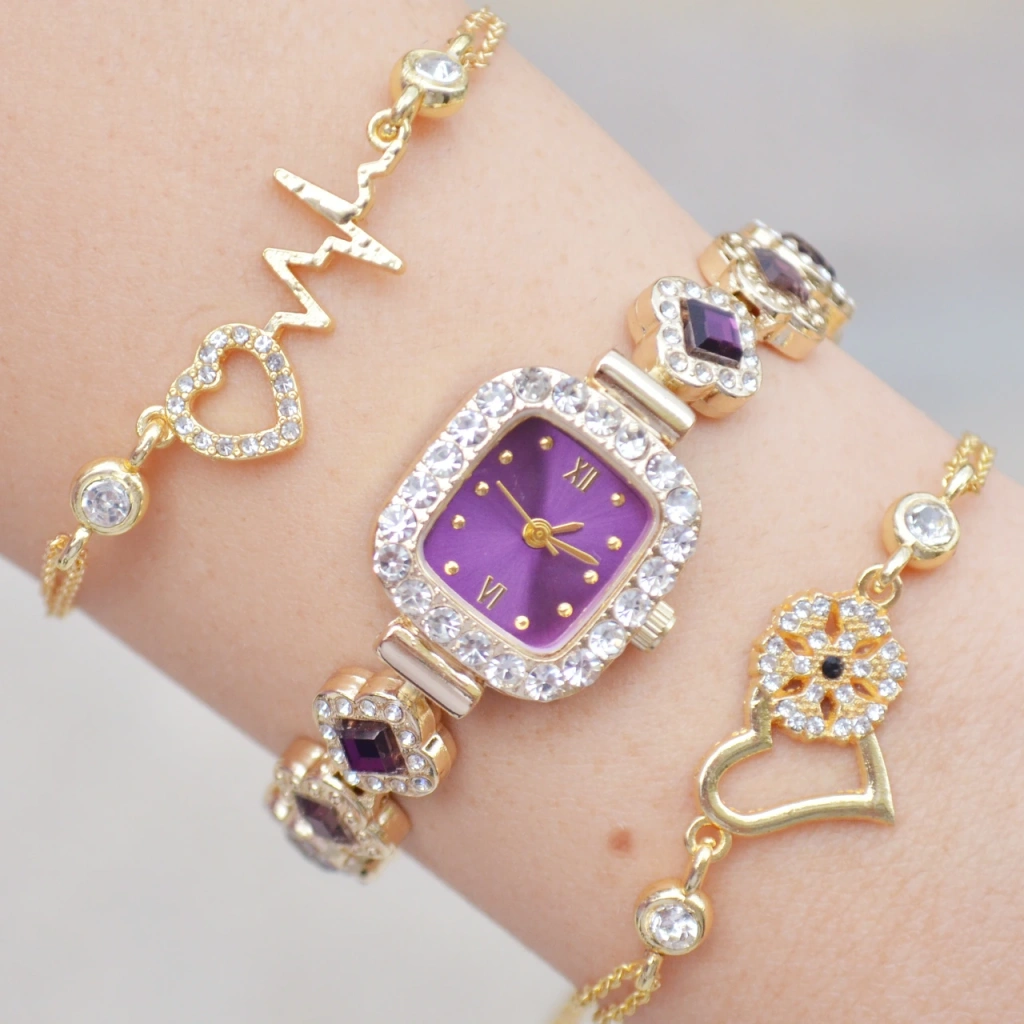 Gold Taşlı Metal Kordon Kadın Saat Kombini 3645