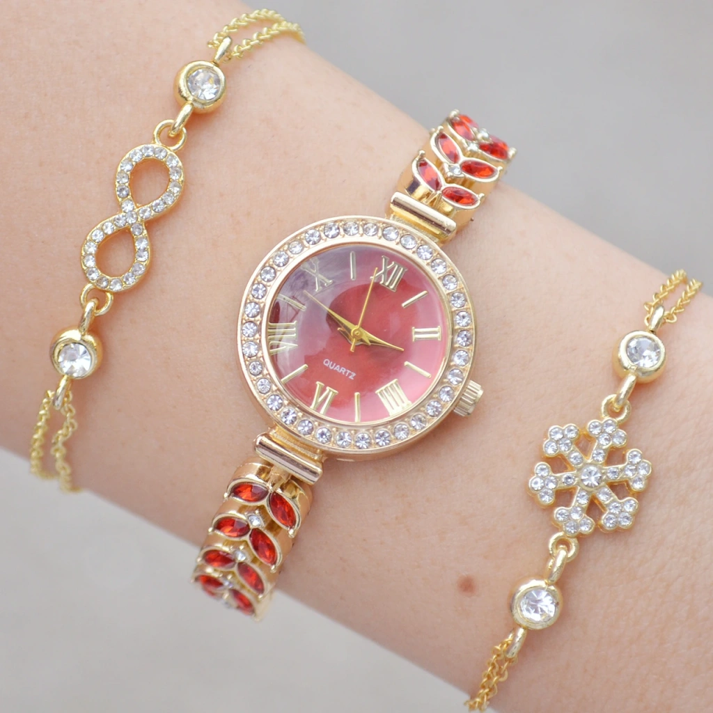 Gold Taşlı Metal Kordon Kadın Saat Kombini 3646