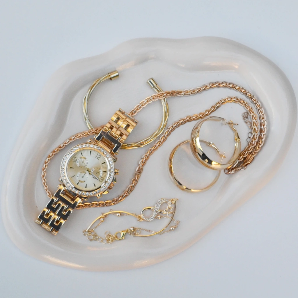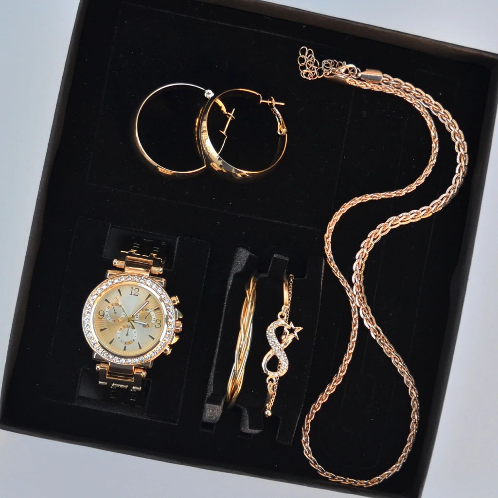 Gold Metal Kordon Küpe Kolye Bileklik Seti 3667