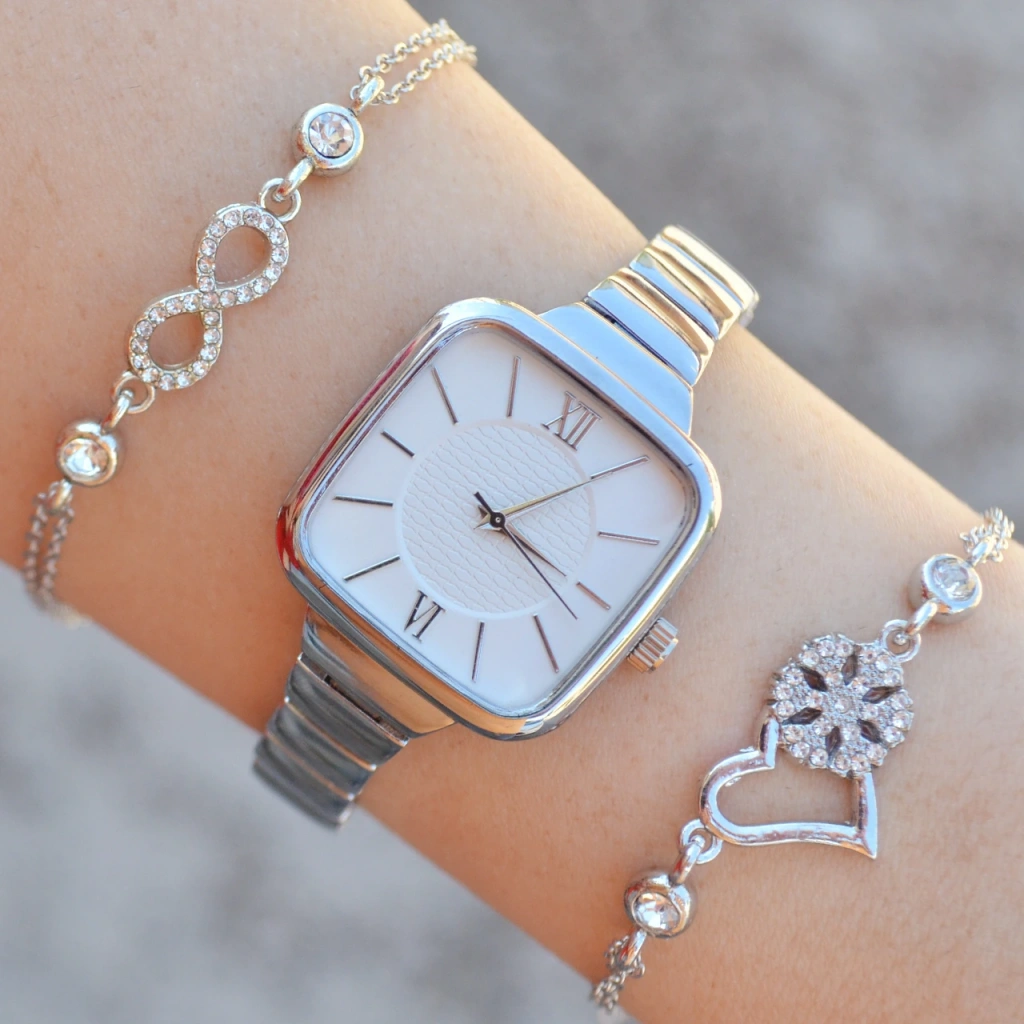 Silver Metal Kordon Kadın Saat Kombini 1021