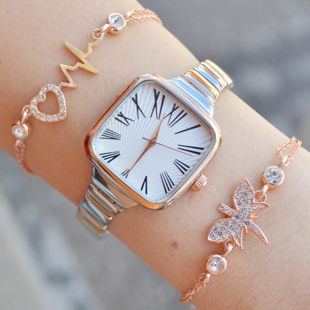 Silver Rose Metal Kordon Kadın Saat Kombini