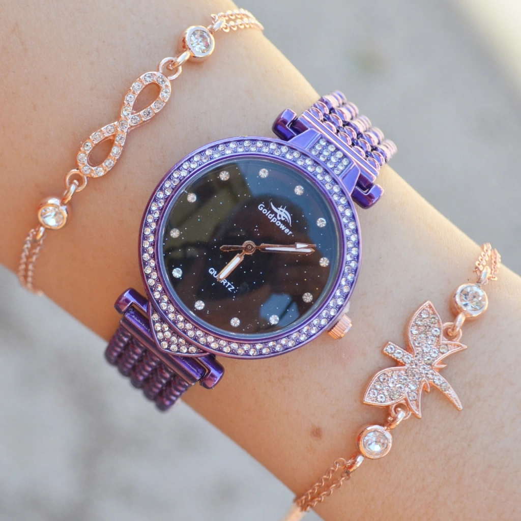 Mor Metal Kordon Kadın Saat Kombini 1074