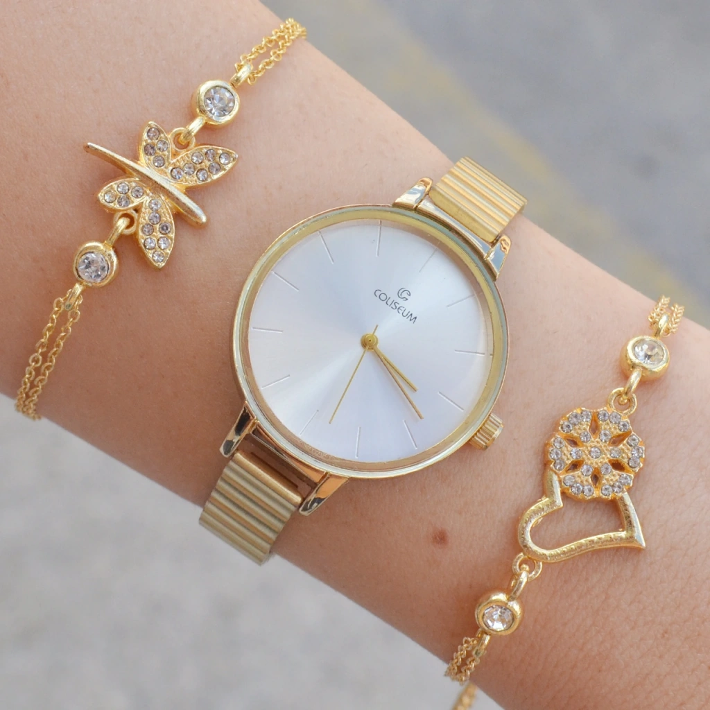 Gold Metal Kordon Kadın Saat Kombini 1272