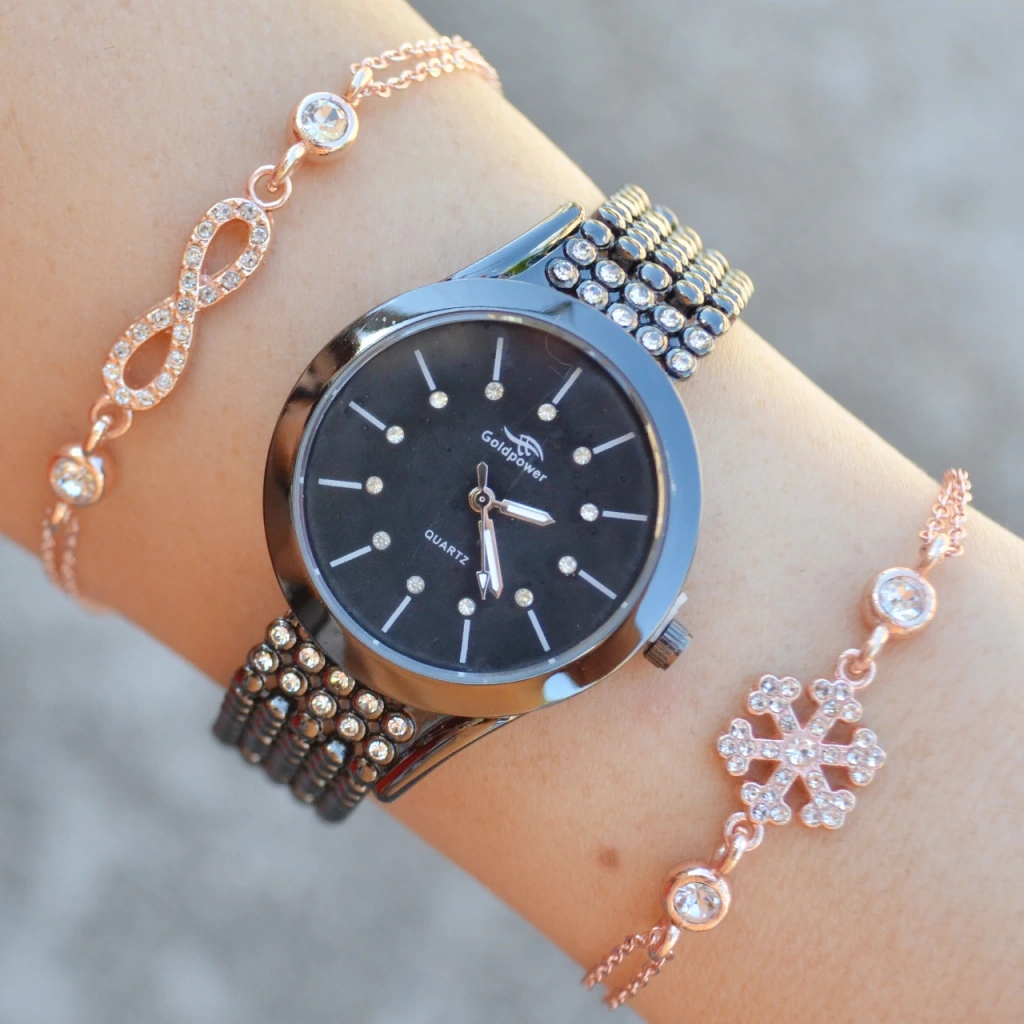 Siyah Metal Kordon Kadın Saat Kombini 1303