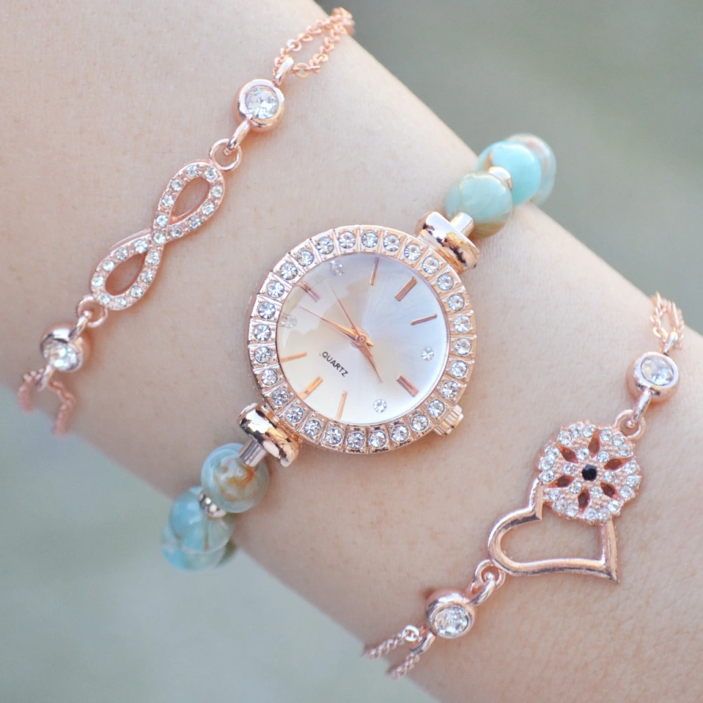 Boncuklu Metal Kordon Kadın Saat Kombini