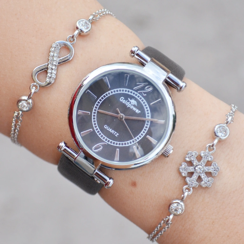 Siyah Deri Kordon Kadın Saat Kombini