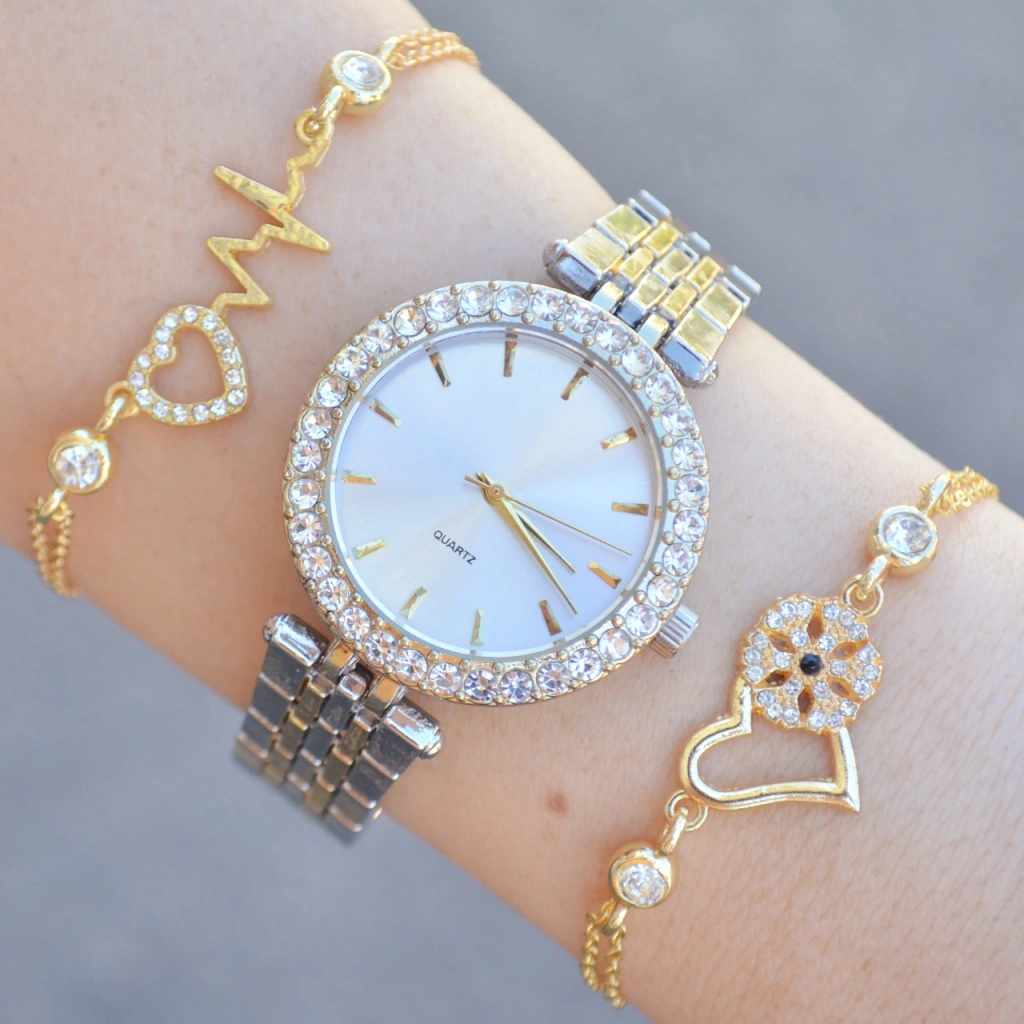 Silver Gold Metal Kordon Kadın Saat Kombini