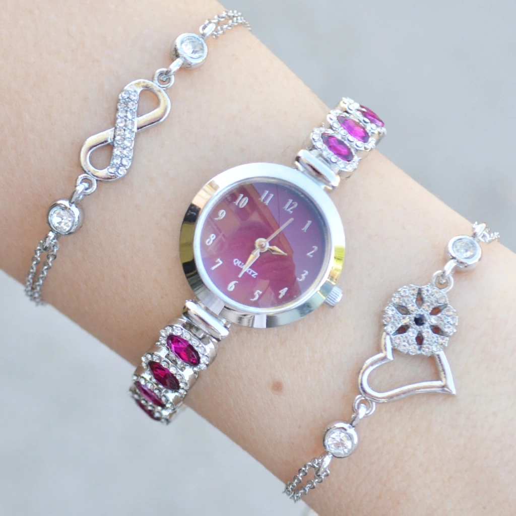 Silver Taşlı Metal Kordon Kadın Saat Kombini 3745